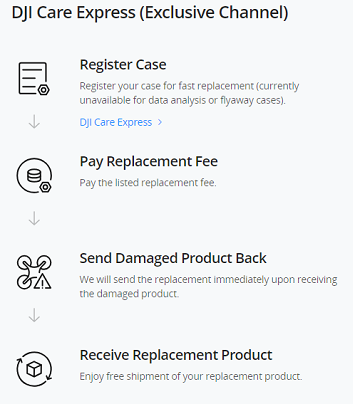 DJI Care Express provides effective and efficient option for replacement to let you receive the replacement product faster.